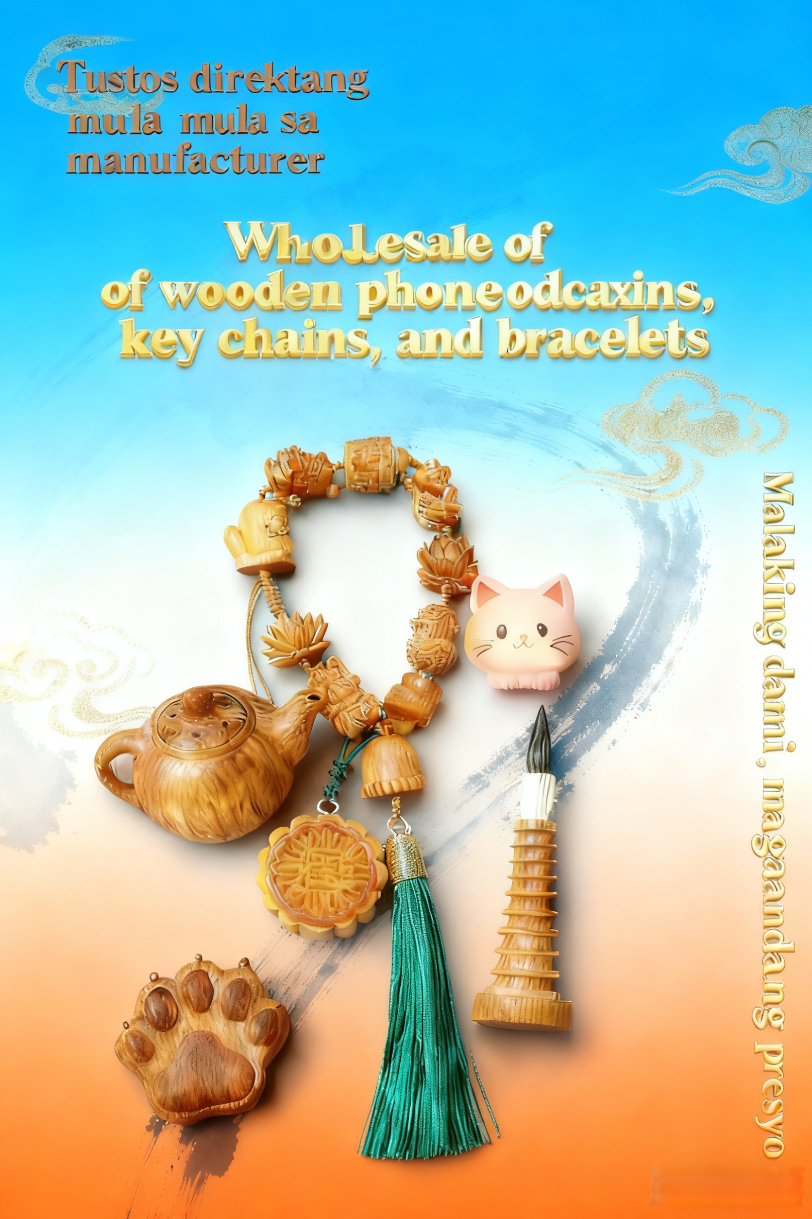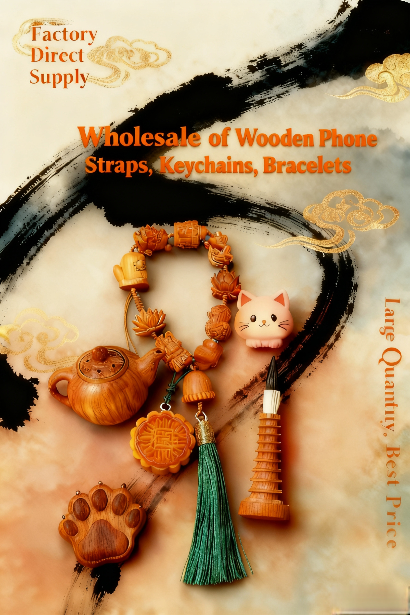 Factory wholesale wooden fashion phone chains, keychains, bag chains, and bracelets.